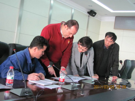 2011年俄方技術(shù)總監(jiān)來我公司針對電廠大型機(jī)組安裝超聲波除水垢機(jī)器,親臨現(xiàn)場制定安裝方案。